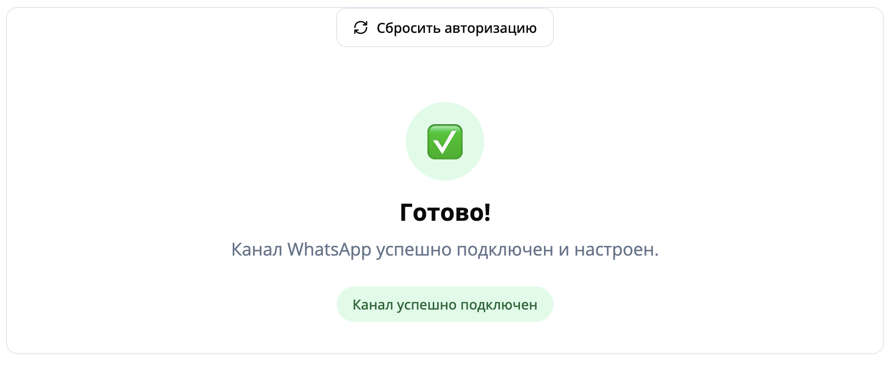 - На странице управления каналами у вас появится новый канал WhatsApp